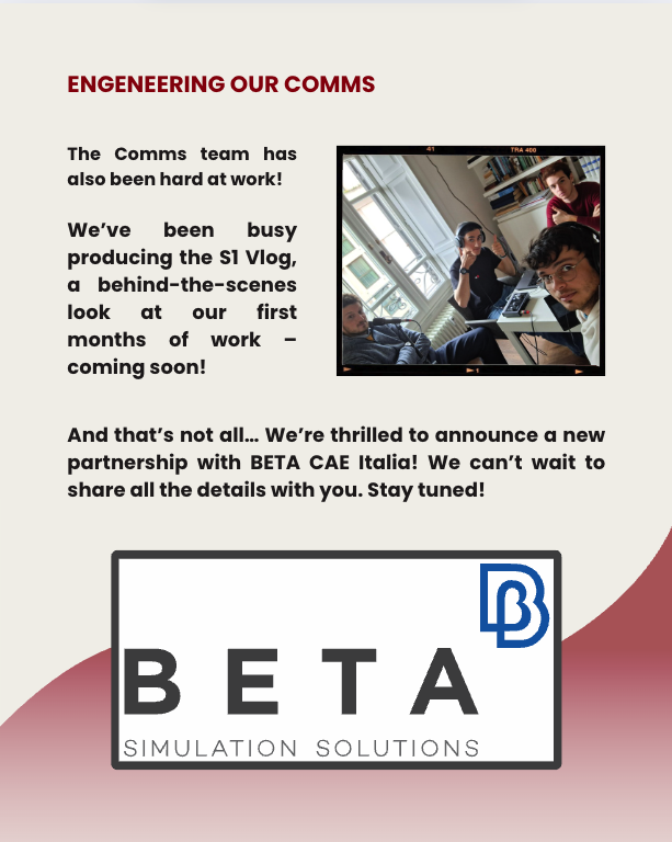 Anche il team comunicazione è stato molto attivo: stiamo infatti producendo il nostro primo vlog, il "S1 Vlog", che offrirà uno sguardo dietro le quinte sui primi mesi di lavoro del team. Stay tuned!